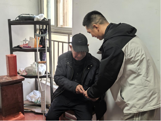 在探访过程中,朱文超紧紧握住于世金老人的手,亲切交谈,详细询问其身体状况和生活近况。随后,朱文超将满载心意的慰问金及米、面等生活必需品递到老人手中。这笔资助不仅及时缓解了老人的生活压力,更给予了精神上的巨大慰藉。