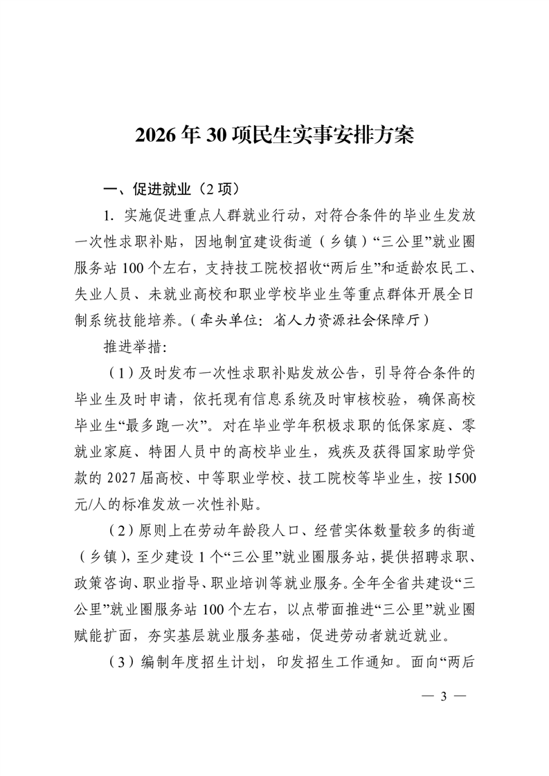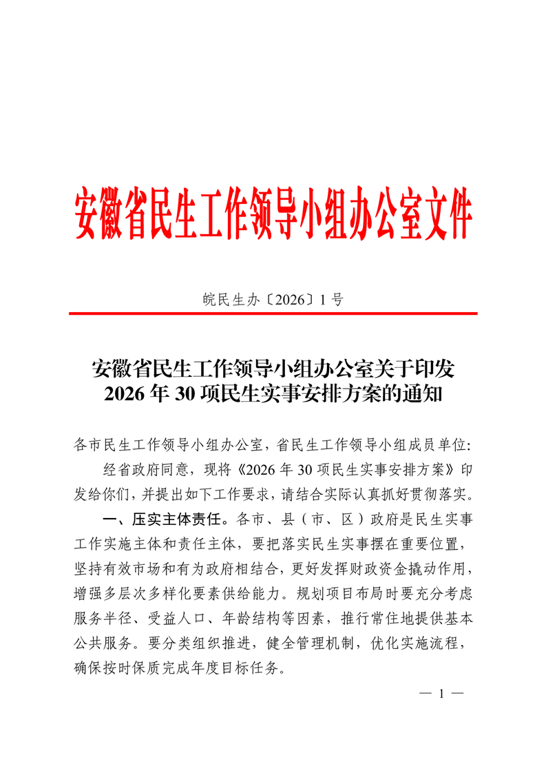 2026年30项民生实事安排方案的通知