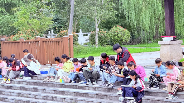 秋阳杲杲,童心烂漫。近日,叶集区文化馆群众文化志愿服务队开展“行走的秋天•带着画笔去写生”户外研学主题活动,带领孩子们走出教室,拥抱自然,用画笔捕捉秋天的诗意与色彩。
