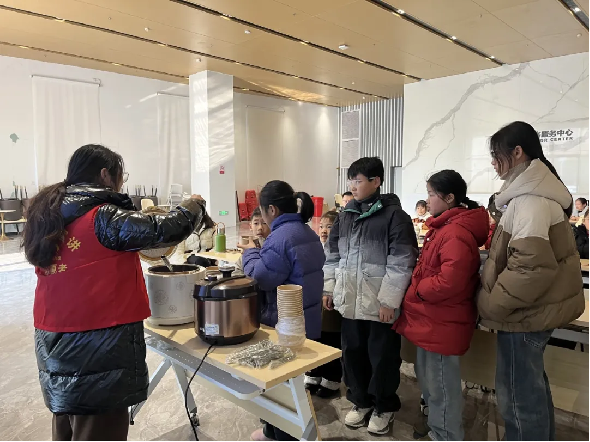 随后的互动环节中,小朋友们在志愿者的耐心指导下,体验了简易腊八粥食材搭配的趣味活动,大家积极挑选食材、交流搭配想法,现场笑声不断,充分展现了参与热情。最后,志愿者为每位小朋友送上热气腾腾的腊八粥,甜糯的口感搭配真挚的节日祝福,让孩子们在味觉与心灵上都感受到了传统节日的温暖。