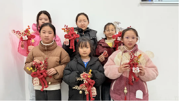 指尖翻飞间,红绳流转成结,一根根彩绳渐渐化作精巧饱满的万字结,创意搭配小马挂饰、福字吊坠,让传统结艺多了马年专属灵动;家长直言“亲手编的结比买的更有意义,既藏着非遗味,又带着马年福”。活动不仅让青少年掌握万字结编织技艺,更在沉浸式体验中触摸非遗温度,让“结艺传情、马韵纳福”的传统美好扎根人心。
