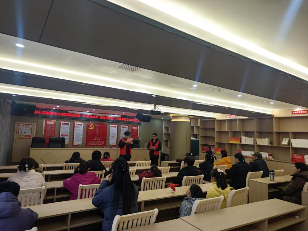 近日,叶集区史河街道柳林社区新时代文明实践站依托“银龄学社”志愿服务项目,在社区幸福邻里阵地举办“平安过大年 禁燃护家园”移风易俗家长学校活动,以法规宣讲、资料发放、互动交流等形式,引导居民树立文明过节理念,筑牢春节安全防线。