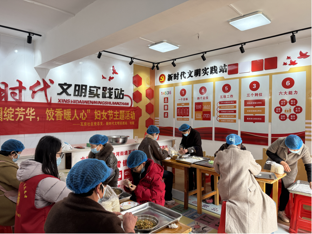 史河街道瓦房社区开展“巾帼绽芳华,饺香暖人心”妇女节主题活动