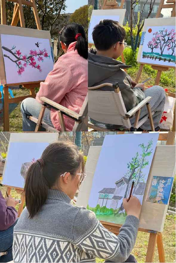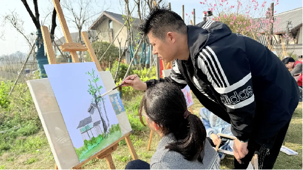 与此同时,文化馆主题活动精彩纷呈,志愿者老师带领小朋友们走进平岗花海,置身桃花、梨花竞相绽放的美景之中,开展户外写生活动。孩子们手持画笔,以春光为底色、以繁花为素材,用心描绘眼前的田园盛景,用稚嫩的笔触定格春日美好。此次活动不仅让孩子们亲近自然、感受春光,更培养了他们的审美能力与艺术素养,实现了体育健身与文化美育的双向赋能。