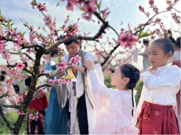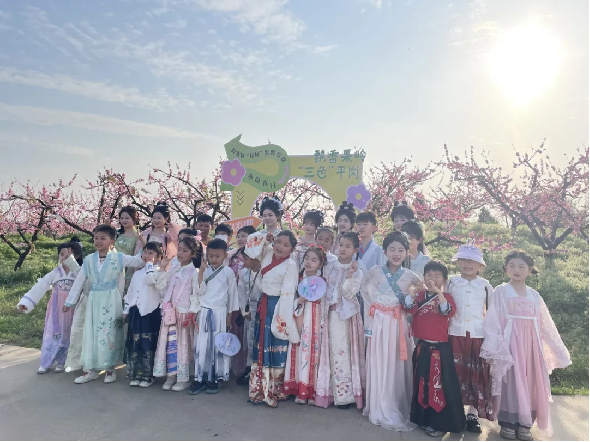 春和景明,桃韵满枝,国风流转。3月28日,花样果岭赏花季“十里桃花,一梦华裳”汉服游园会在叶集区“花样”果岭景区圆满落幕。此次活动由叶集区文化旅游体育局主办,叶集区博物馆、叶集区“花样”果岭景区、平岗街道新时代文明实践所及便民服务中心联合承办,吸引了30名青少年儿童身着各式汉服参与其中,孩子们将千年古韵与春日盛景完美融合,为这场文旅盛宴注入了灵动生机。本次活动以花样果岭赏花季为媒,精心串联芮祠新村爱国主义教育基地、平岗切岭展览馆、平岗•欢乐岭上儿童乐园、富岗村桃园广场四大特色点位,打造了一场集国风体验、亲子休闲、春日赏景、文化传播于一体的沉浸式文旅盛宴,成为叶集春日文旅市场的一道亮丽风景线。