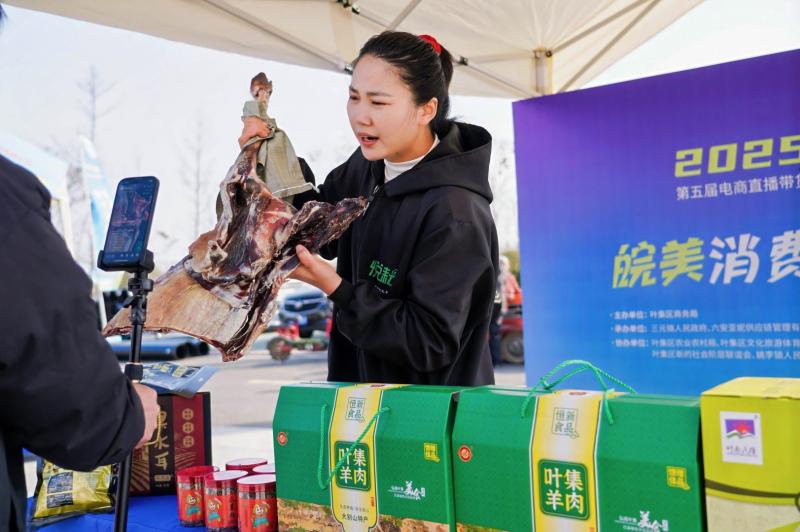 实战比拼环节成为检验培训成果的“试金石”。通过各乡镇街组织推荐,10组参赛选手同台竞技,围绕稻虾米、风干羊肉、空心挂面、腊鹅等叶集优质网货,展开激烈的直播带货角逐。赛事采取集中直播带货两小时的方式进行,选手们灵活运用特训所学,在选品排品、卖点提炼、互动引流等方面各展所长,直播间内订单持续刷新。据统计,大赛期间各直播间累计观看人数达6800人,网销额合计9.45万元。